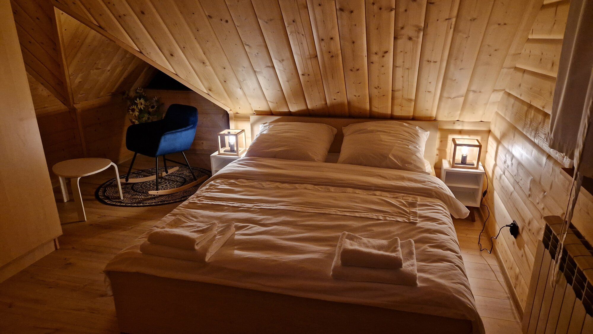 Drewniane bale, klimatyczny kominek, nowoczesna łazienka. Przygoda nie musi być niewygodna.